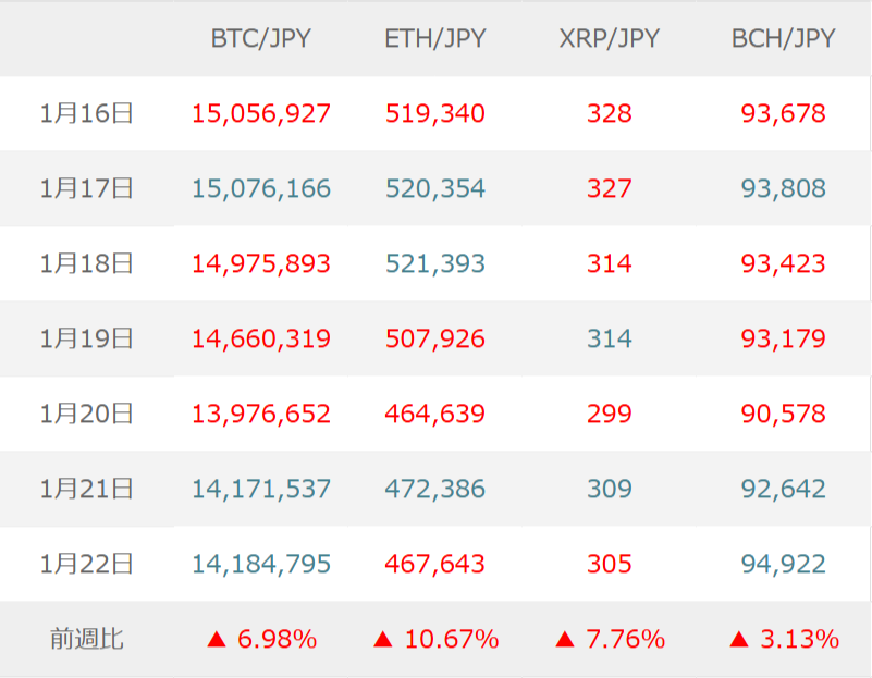 ビットコインは、米国における暗号資産規制進展への期待が剥落したことに加え、地政学リスクを意識したリスクオフの流れが強まり、年初からの上昇分を打ち消す展開となった。