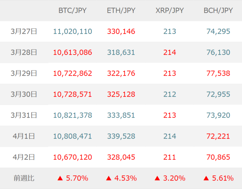 もっとも、週後半にかけては再び上値が重くなった。トランプ大統領は4月1日夜の国民向け演説で、今後数週間にわたりイランを攻撃し続ける考えを示し、イラン側も徹底抗戦の姿勢を鮮明にした。これを受けて原油価格は再上昇し、株式も下落する中、ビットコインはリスク資産として再びBTC=66,000ドル(約1,056万円)付近へ急落した。