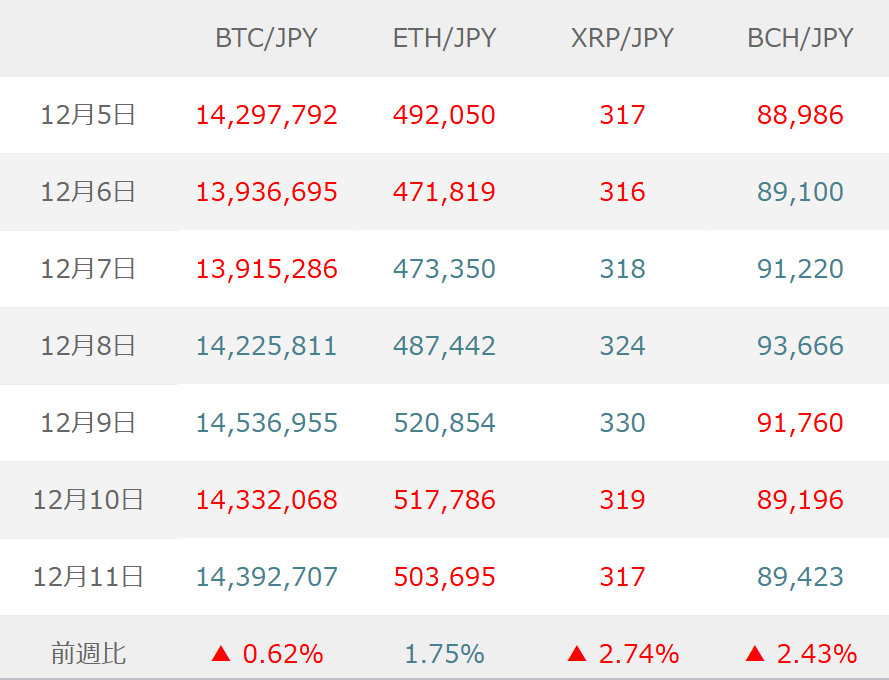 ビットコインは、12月に入ってから回復基調を見せつつも、ストラテジー【MSTR】を巡る懸念が払拭されず、上値の重い展開が続いた。